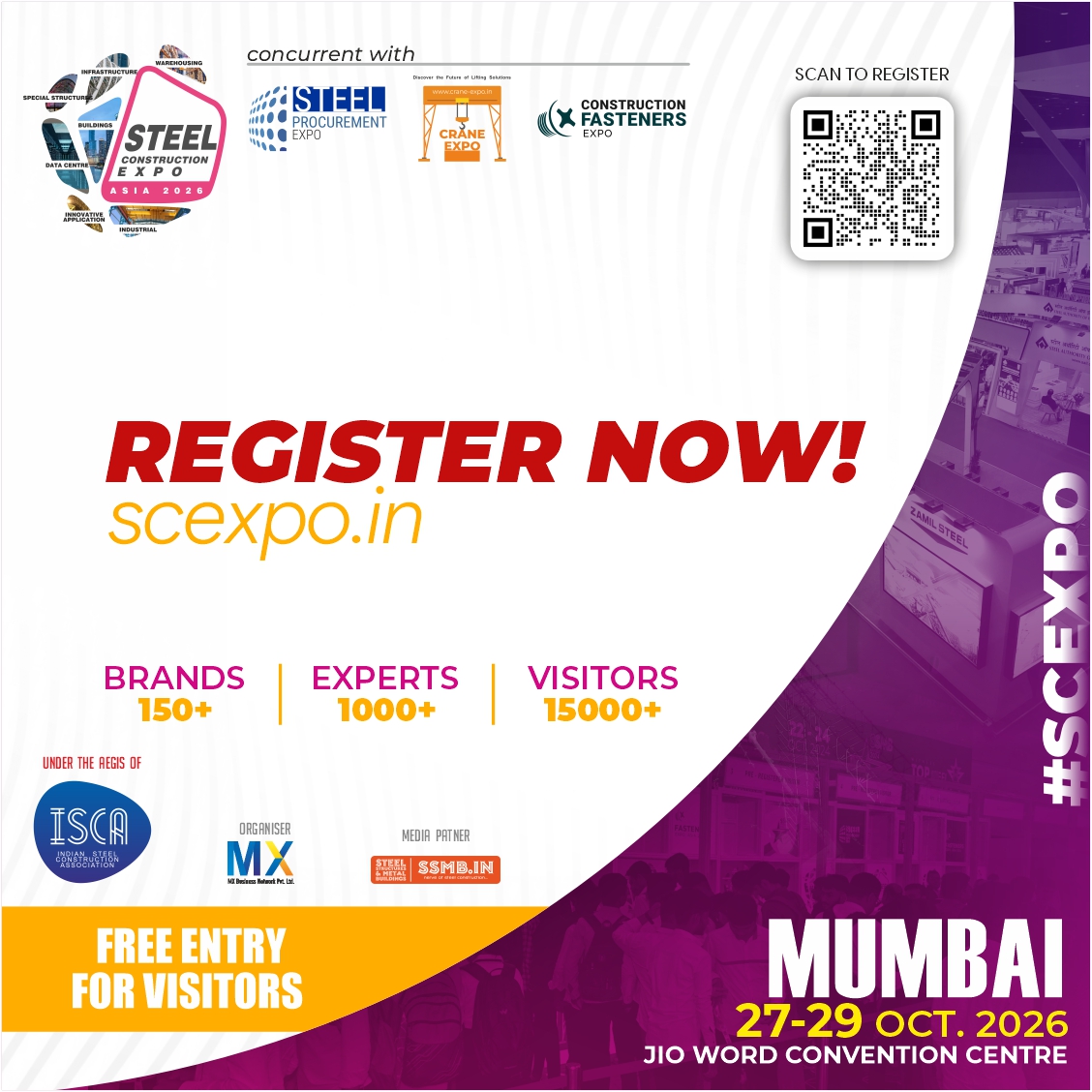 Join us at STEEL CONSTRUCTION EXPO MUMBAI 2026, held concurrently with the Crane Expo, Fastener Expo, and Steel Procurement Expo!